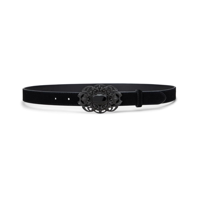 Realized in velvety suede, this Lauren Ralph Lauren Stone-Buckle Suede Skinny Belt is centered by an ornate buckle embellished with an imitation gemstone. A full-grain leather lining-distinguished by its naturally smooth finish-enhances this styles luxurious character. Crafted from split cow suede material.