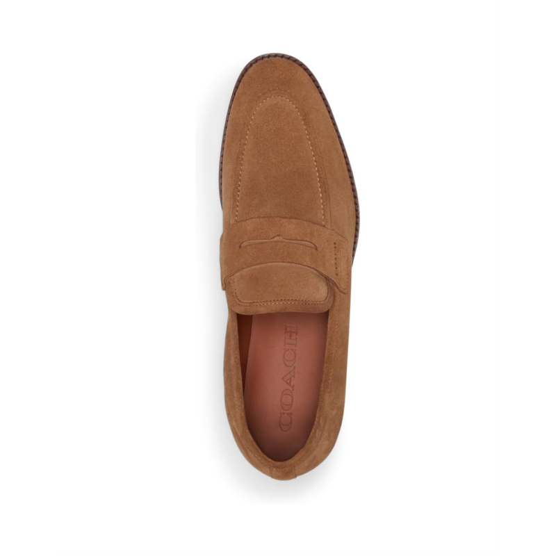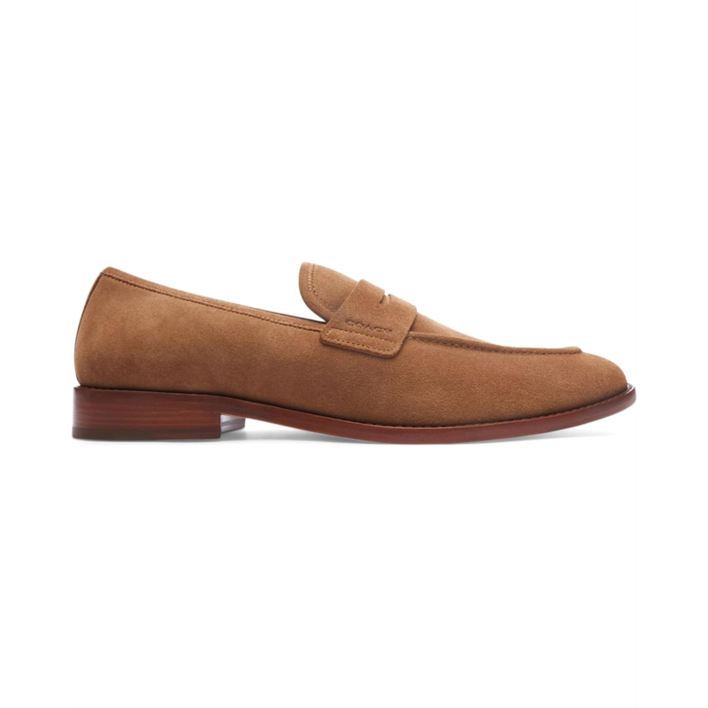 Complete your look by wearing the COACH Declan Suede Loafer. The slip-on style shoes have a round-toe design with lightweight construction for a classy and comfortable look. The suede upper, man-made leather lining, and leather footbed construction ensure longevity and durability, making these loafers perfect for prolonged wear.