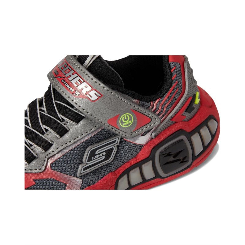 Let your kiddo''s daily endeavors align with chic style wearing the SKECHERS KIDS Light Storm 3 400151L Casual and Fashion Sneakers. This lace-up footwear features synthetic upper construction with hook-and-loop strap closure and dual pull tabs for easy wear. With padded collar and tongue, the round toe pair has a striking lightning design that easily allures little explorers.