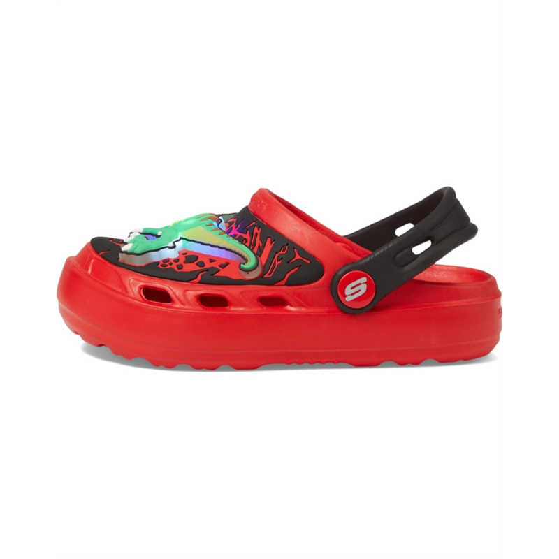 Get ready to stomp around in style wearing the SKECHERS KIDS Swifters - T-Rex Brights! These shoes feature sculpted Foamies EVA upper with a cool dino-themed design that your little one is sure to love. The lightweight, flexible perforated upper and contoured cushioned footbed provides maximum comfort for all-day play. The lighted details add an extra element of fun to these must-have shoes.