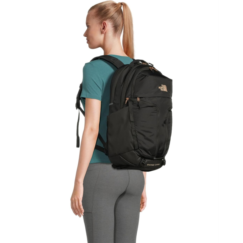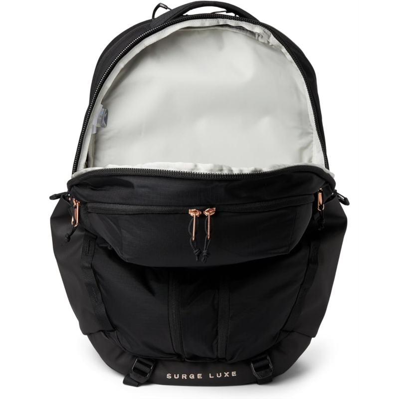 - The North Face Womens Surge Luxe bag offers a refined take on everyday functionality. Accredited by the American Chiropractic Association, this backpack prioritizes ergonomic support while maintaining a sleek aesthetic. Crafted with 50%-74% recycled or sustainable materials, it balances eco-conscious design with durability. Key features include a dedicated laptop sleeve, a tablet sleeve, and a sternum strap with a WhistleLoc buckle for added security. The Non-PFC Durable Water-Repellent (DWR) finish ensures protection against the elements, while YKK zippers provide reliable closure. Designed with a women-specific fit, this backpack delivers both style and practicality for work, travel, and daily adventures.
