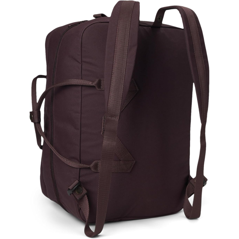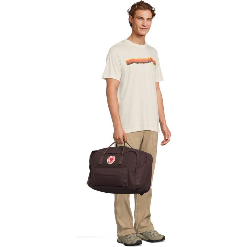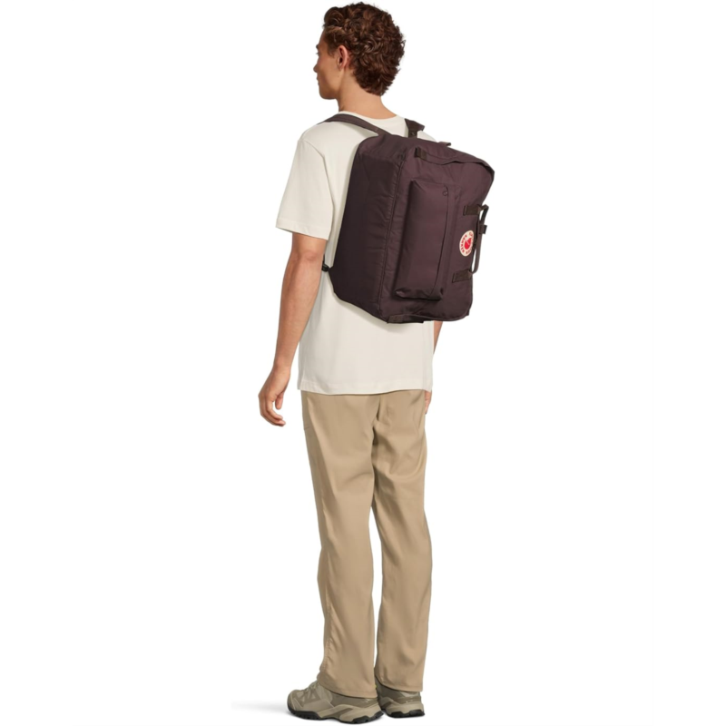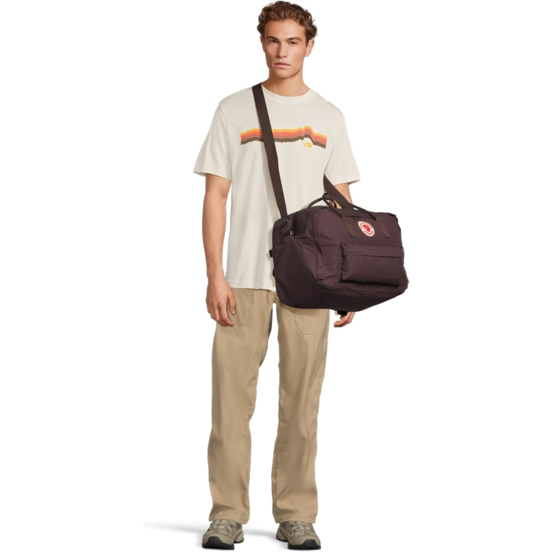 - The Fjallraven Kanken Weekender is a duffel-inspired bag made from the same hardwearing Vinylon fabric as the original Kanken, perfect for a long weekend away. It can be carried in three ways: as a hold-all, a crossbody bag or a backpack. The large, main compartment with padded laptop sleeve and press button closure keeps laptop in place. A large, collapsible front compartment and two smaller zippered pockets, plus, classic zippered front pocket with interior key hook allow organized storage. The padded back panel adds comfort and shoulder straps, back straps, & crossbody strap make it convenient to carry around.