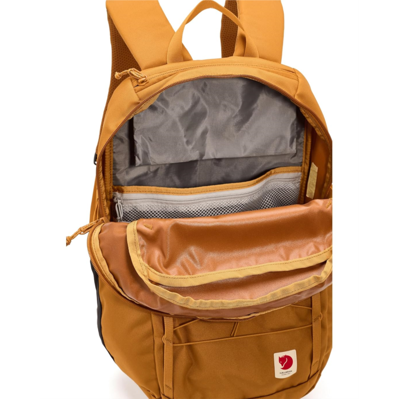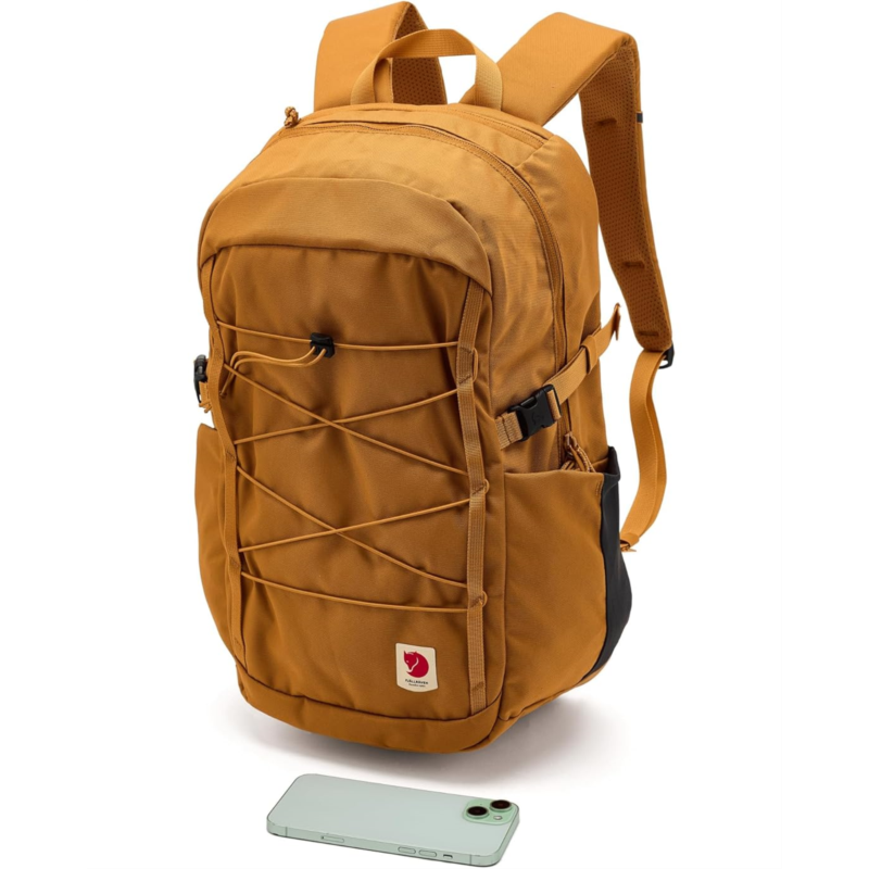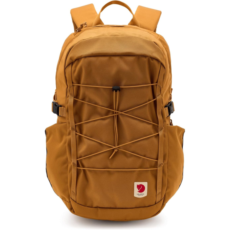 - Robust and versatile backpack with a large main compartment featuring a raised and padded laptop sleeve and a zippered mesh pocket. The Fjallraven Skule 24 features durable Oxford fabric made from 600D recycled polyester with a 1500mm polyurethane (PU) coating and has useful pockets, including an outside zippered pocket with a key clip and stretch side pockets to help keep your gear in order. This bag is perfect for light hikes, everyday use, and commuting.