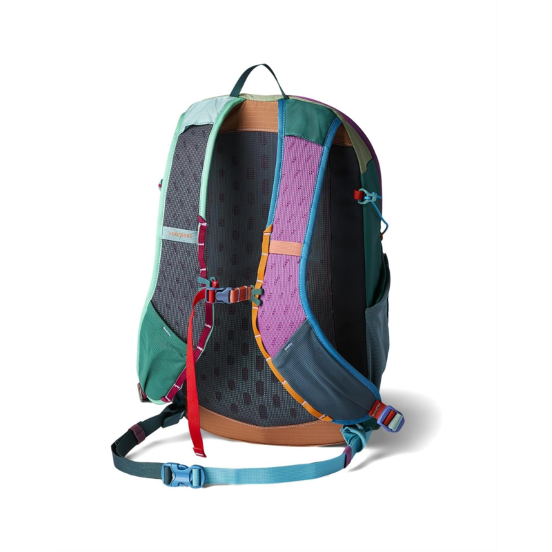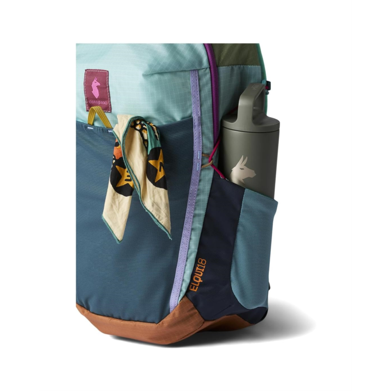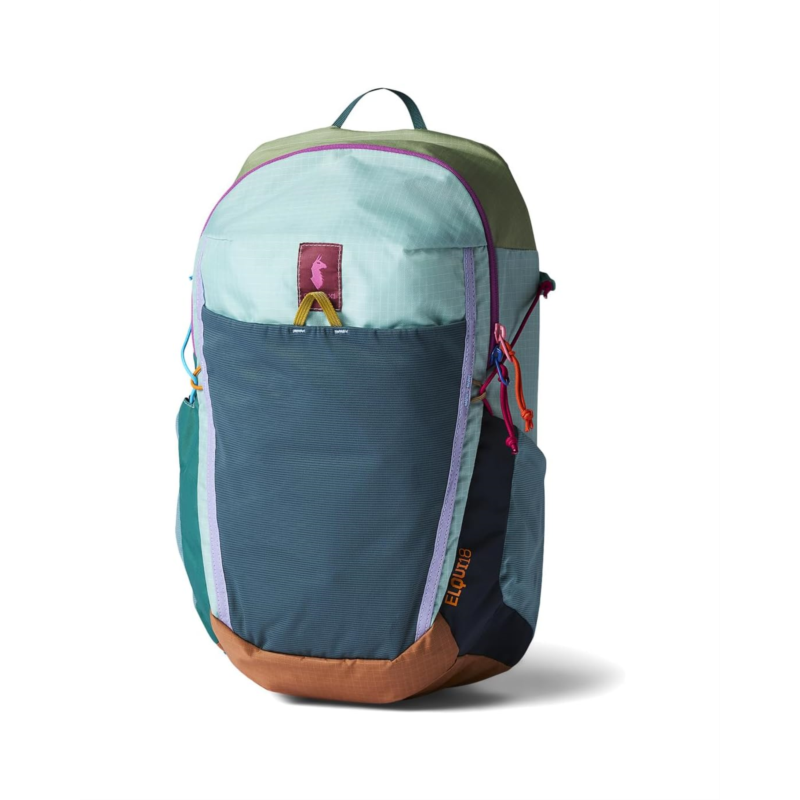 - Compact yet feature-filled, the Cotopaxi Elqui18L Backpack makes getting out easy with a large stretch stuff pocket and a comfortable, breathable back panel. A part of the Del Dia collection, this backpack is made from nylon and designed with a front panel opening for easy packing & organizing. Its shoulder straps and a top grab handle make it easy to carry around. This laptop backpack has two stretch pockets on the harness, two water bottle side pockets, and a stretch mesh dump pocket. The breathable shoulder straps & back panel, an adjustable & removable sternum strap, and an adjustable & removable waist belt add to its functionality. With side compression for added comfort, this backpack will become your go-to travel companion.