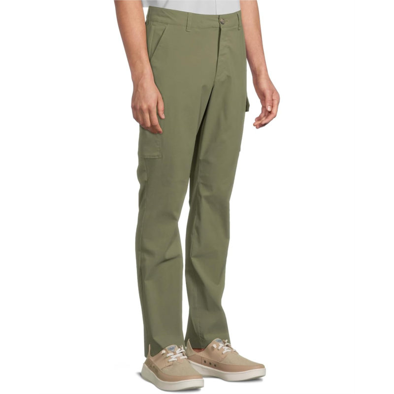 Designed for your hiking adventures, the Columbia Tech Trail Utility Pants are lightweight pants that are made from Omni-Shield fabric that repels moisture and resists stains to keep you clean and dry in damp conditions. The drainage holes on the back pockets are designed for adventures near water. These hiking pants feature a straight-leg silhouette with a utility loop at the waist for a carabiner clip. They are finished with a zip-fly, buttoned closure, and belt loops.