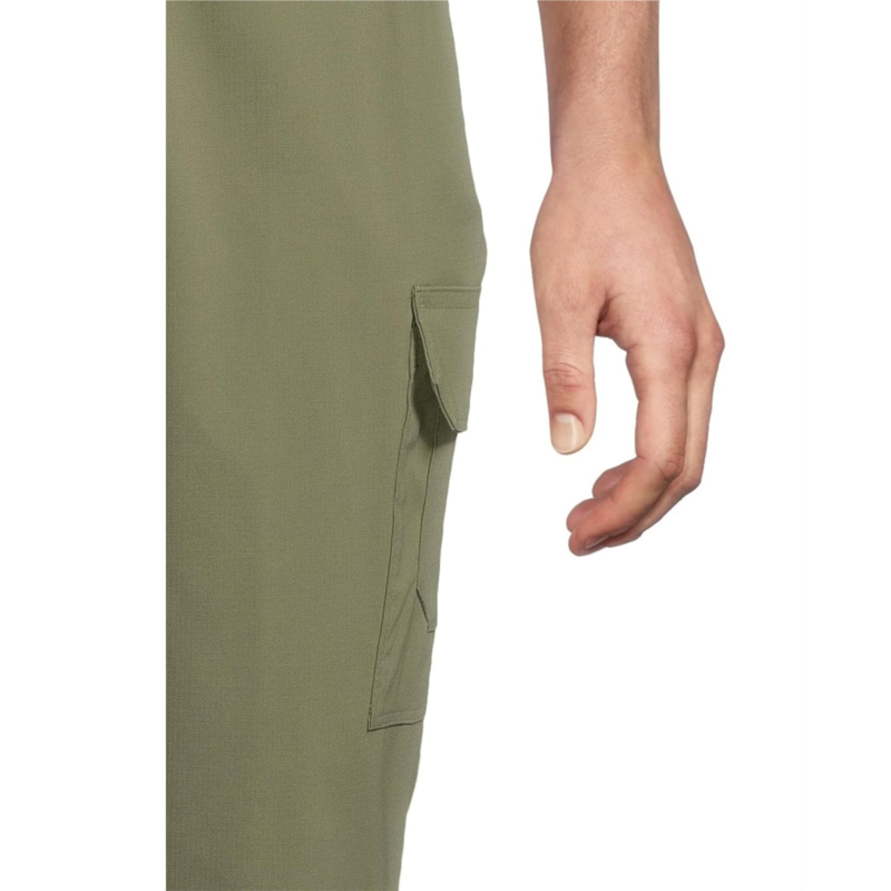 Two front hand pockets, two side cargo pockets, and two pockets with hook-and-loop closure.