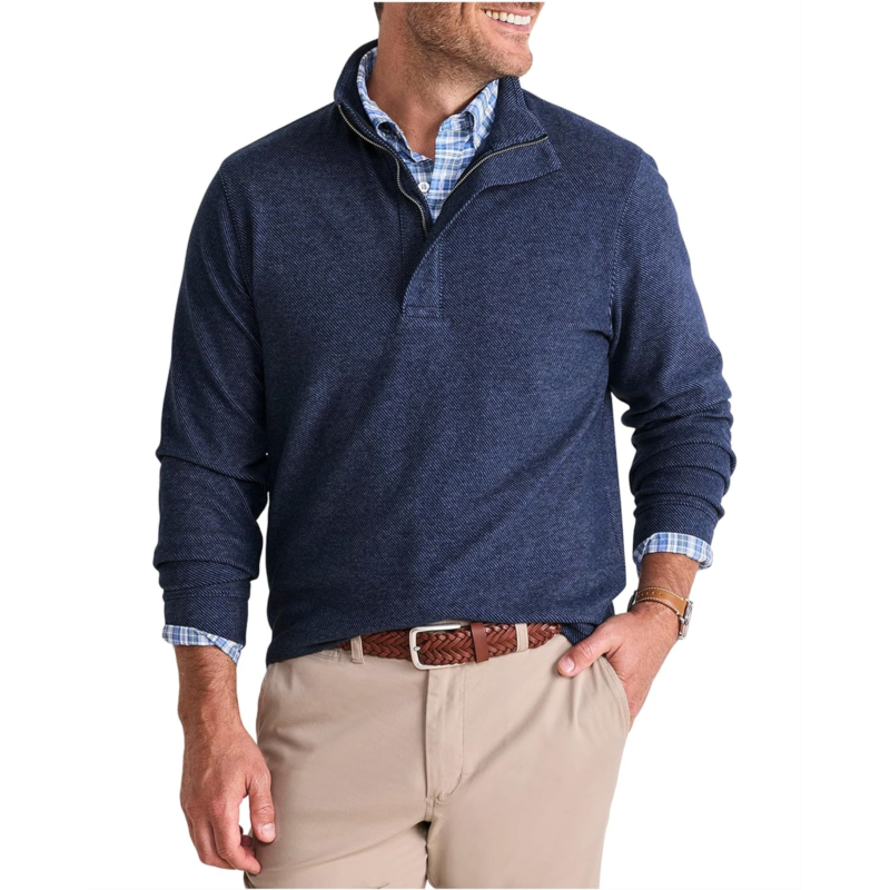 The vineyard vines Calmwater Quarter-zip features a quarter zipper front closure with a stand collar and long sleeves. It offers a relaxed fit that moves with you.