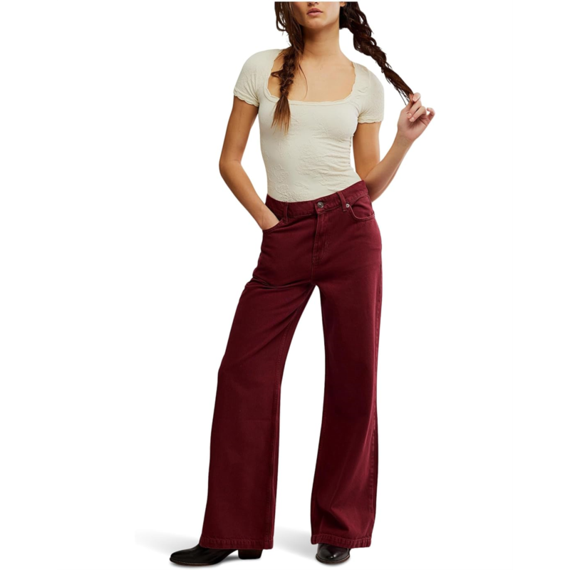 Embrace a laid-back look of the Free People Stride Jeans. The low-slung, loose fit and wide-leg silhouette of these jeans make them the perfect choice for casual days out. Featuring belt loops, a zip-fly and button closure, and a five-pocket design, these jeans are made from drapey authentic denim that will keep you comfortable all day. Why We ♥ It: Sleek with pointed boots or off-duty with court sneakers, this pair has endless ways to wear.