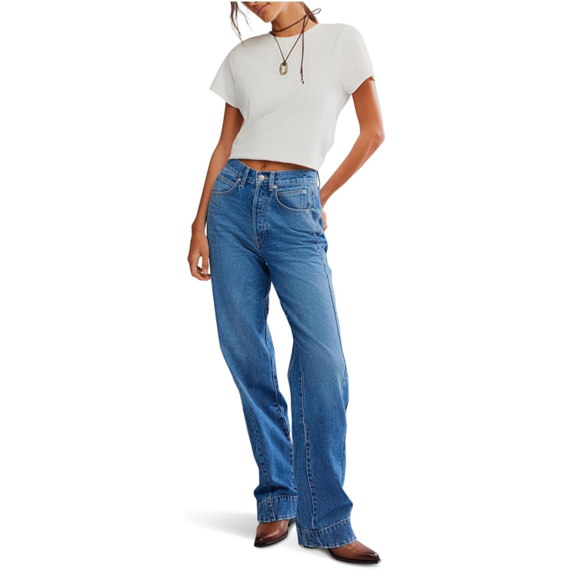 Trendy, timeless, and effortlessly cool: Free People Stick Around Slim Curve Jean. With a classic fit and straight leg silhouette, these mid-rise jeans flatter every curve while keeping comfort front and center. The zip-fly with button closure ensures a secure, polished look, while five pockets and functional belt loops combine practicality with effortless chic.