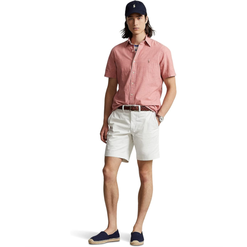 The Polo Ralph Lauren Classic Fit Chambray Shirt is cut for a roomy fit and washed to give the lightweight fabric a weathered, lived-in look on a classic short sleeve front button closure shirt with pointed collar.