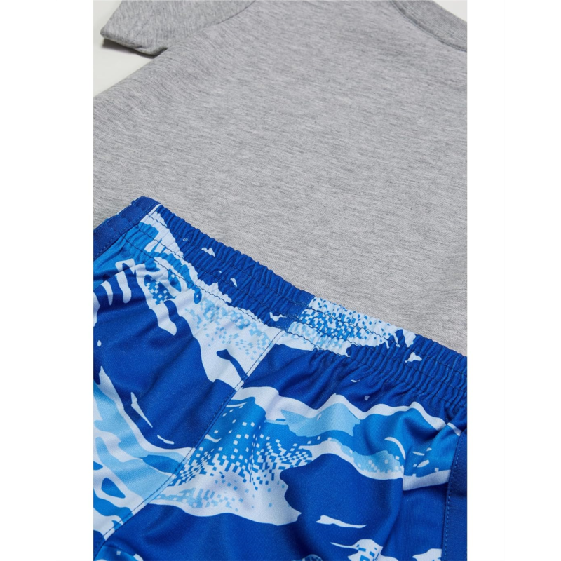 Cute, comfy and as sporty as it gets. This adidas Kids Cotton Heather Tee & Aop Camo Short Set for infants gives your baby a look youll love with a fit that lets him crawl, scoot and work on his first moves. The fabrics are gentle on the skin and easy to clean. The set includes a regular crewneck, short sleeve, and front graphic print tee and matching shorts with elasticized waistband.