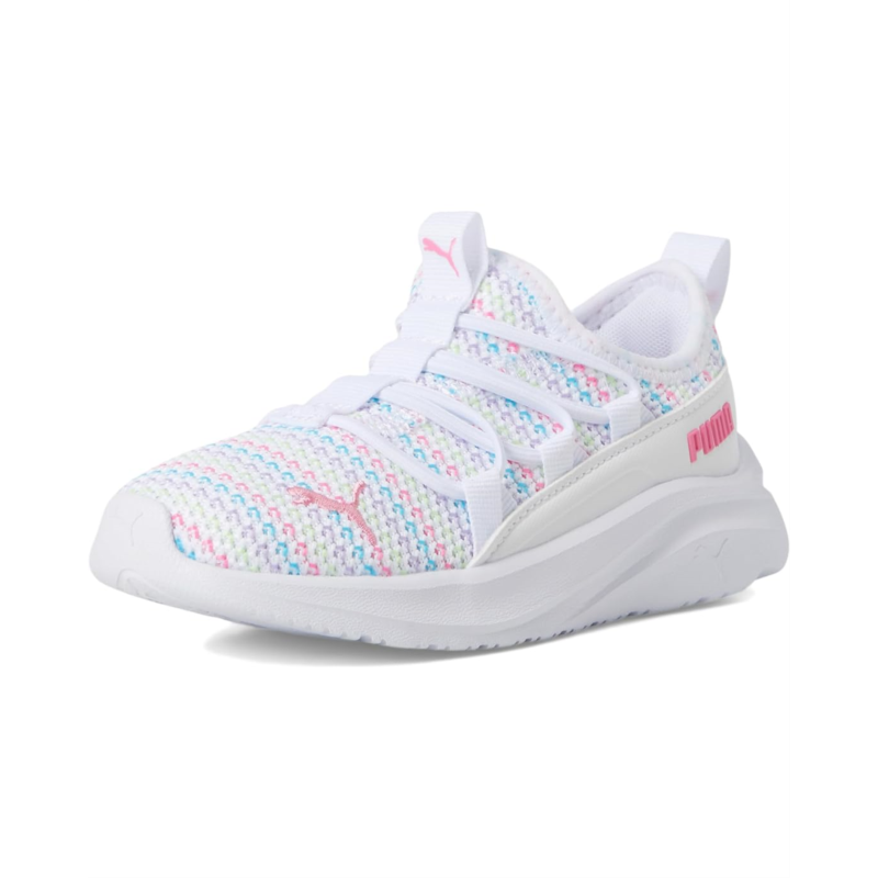 Introducing the PUMA Kids One 4 All Slip-On Shoes 2.0. This specifically designed kids running shoe is built to be easy to slip on, flexible, and softer than ever with a PUMALITE midsole. Featuring colorful midsole and upper treatments, the multiple designs of this shoe are distinct and vibrant! The mesh upper ensures optimal airflow to keep your little ones feet cool and comfortable throughout the day. Utilizes PUMALITE foam technology, an exceptionally lightweight foam designed to provide soft cushioning and reliable support.