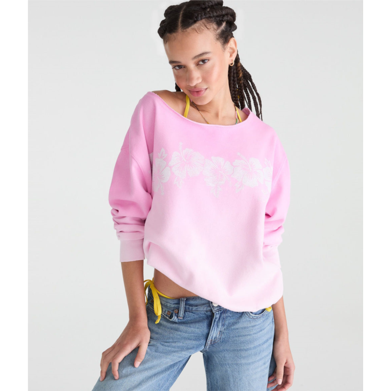 [US] Aeropostale roxy hibiscus ombre off-the-shoulder sweatshirt