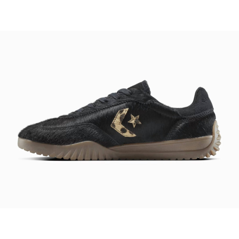 Get your daily steps in with these adorable sneakers.Step out in style with the Womens Run Star Trainer Shoes by Converse. These sleek black sneakers feature a round toe and flat heel, ideal for minimalist travel outfits. Indulge in luxe cushioning and textured cheetah prints, perfect for adding a bold touch to your fall wardrobe. Enjoy the blend of sports, style, and heritage thats versatile enough for all your favorite looks.