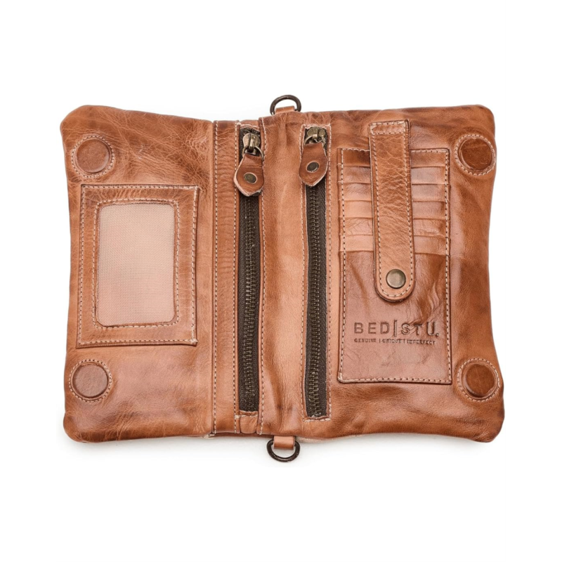 - The Bed Stu Cadence Pw is a versatile leather essential crafted in a rich, lived-in finish. Designed to move with you, it shifts easily from wallet to clutch to crossbody with two removable straps. The patchwork design makes this bag unique and epitome of handcrafted. A zippered exterior pocket and organized interior with zippered compartments and card slots keep everything in place, while the sleek magnetic closure adds a refined touch-perfect for travel, evenings out, or everyday errands.