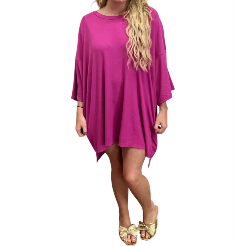 Embrace the versatility of this tunickorea blouse, expertly crafted for seamless layering or perfect to wear on its own. Its detailed design and comfortable fit make it a perfect addition to any closet.Introducing the Ribbed Crew Knit Tunic by Karlie in a rich mulberry hue, combining comfort and style effortlessly. This tunic features elbow sleeves and a flattering crew neckline, crafted from soft, breathable cotton. The oversized fit with a side slit makes it versatile enough to pair with leggings, biker shorts, or denim shorts. Closure - Pull on. Perfect for both a night out or a cozy weekend ensemble.