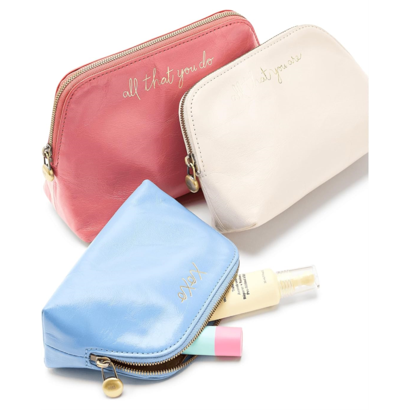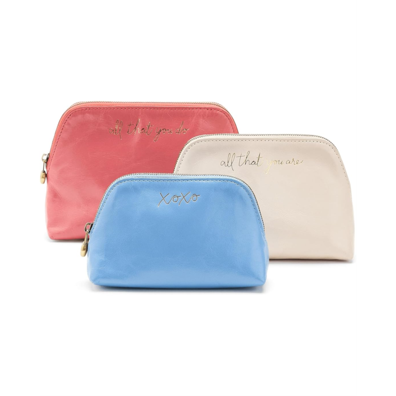 - Say hello to the HOBO Tri-Pouch, your daily trio that keeps life beautifully sorted. Crafted from luxe leather with a soft polyester lining, these pouches feel as good as they look. Designed for versatility, you can stack them, nest them, or carry them solo, each size perfectly shaped to hold your everyday must-haves. From makeup touch-ups during travel days to organizing your essentials in style, these three zippered compartments make chaos disappear. Carry them by hand for a sleek, minimal vibe or slip them into your tote for next-level organization. Thoughtfully designed pockets keep everything right where you need it, no more digging around.
