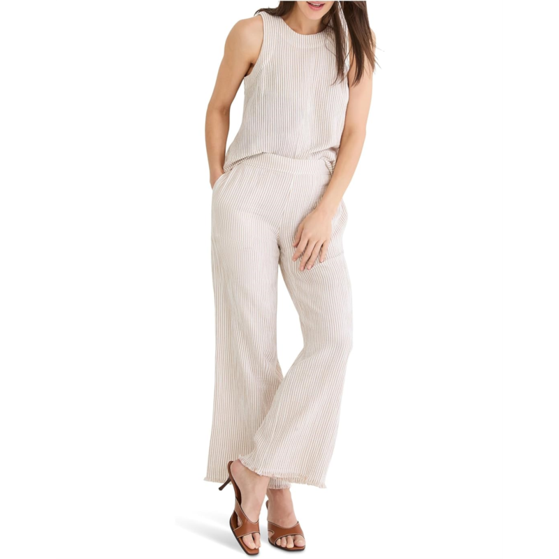 - Chic and airy, the NIC+ZOE Petite Pinstripe Gauze Wide Leg Pants are an all-season outfitting essential. Designed with breathability and ease in mind, this wide leg style is perfect for fuss-free warm weather wear. Fitted through the hip into a wide leg opening, the pull-on style pants feature an elasticated back waistband, two on-seam front pockets, an allover striped pattern, and an ankle length. These can be complemented with the Pinstripe Gauze Pop On Tank, a part of the matching set.