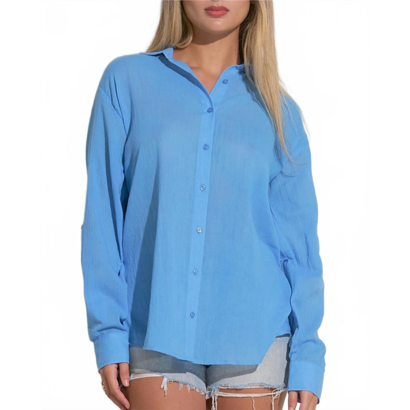 [US] ELAN button down travel cover up top in sky blue