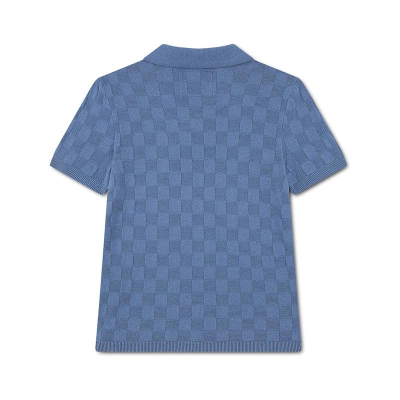 - Collared neckline and short sleeves.