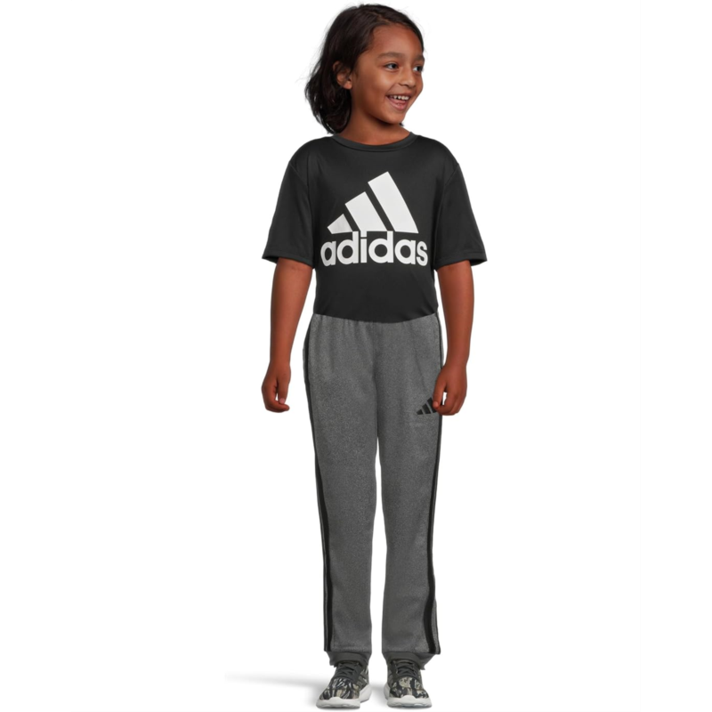 [US] Boys adidas Kids Elastic Waistband 3-Stripes Heather Tricot Joggers (Toddler/Little Kid)