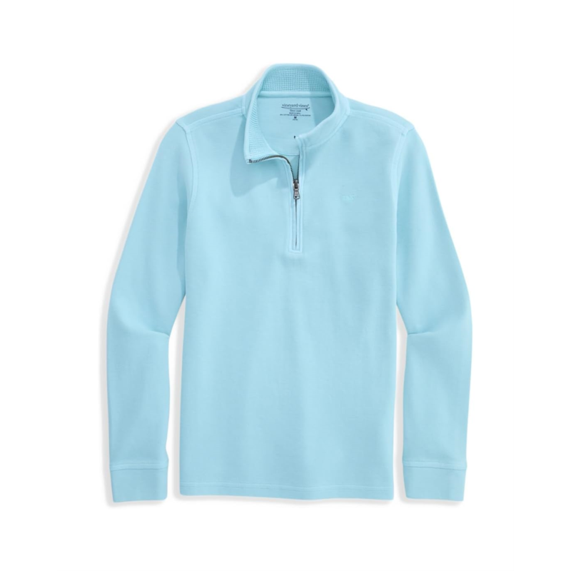 - Garment-dyed for a perfect broken-in look and feel, the Vineyard Vines Kids Coastline Garment Dye Q-Zip pullover is ideal for easy layering. Made from a cotton blend, it is styled with long sleeves, a collared neckline, and a straight hem. The quarter-zippered front closure ensures easy on and off. This quarter-zip pullover is an instant classic that combines timeless style with an unbeatable feel.