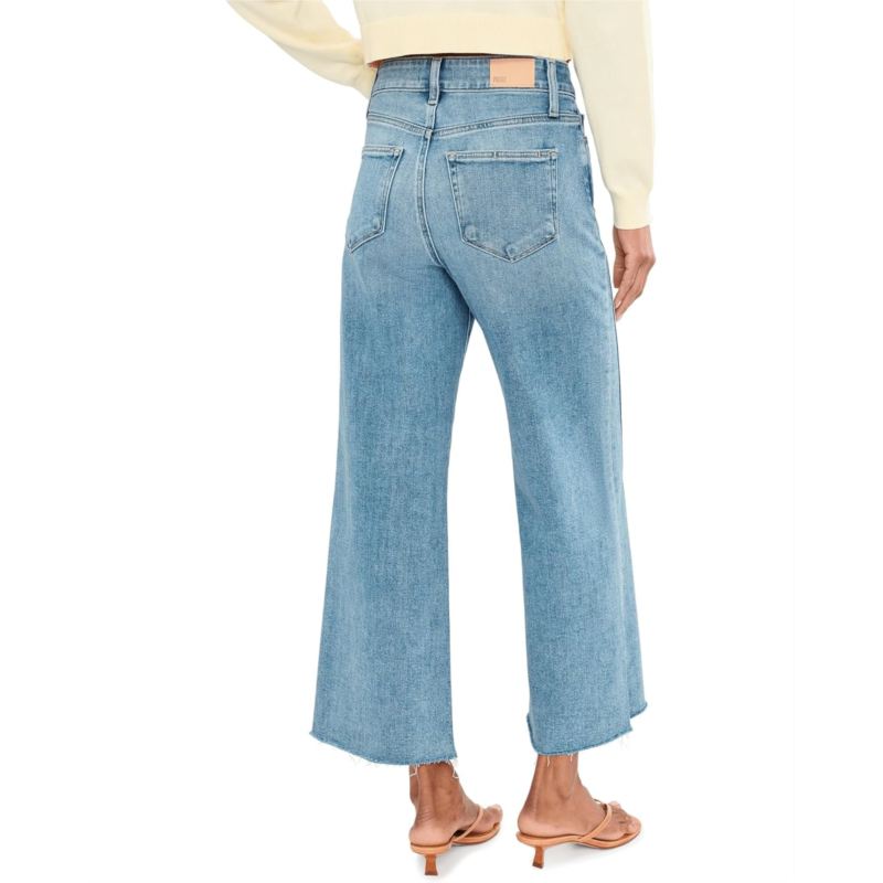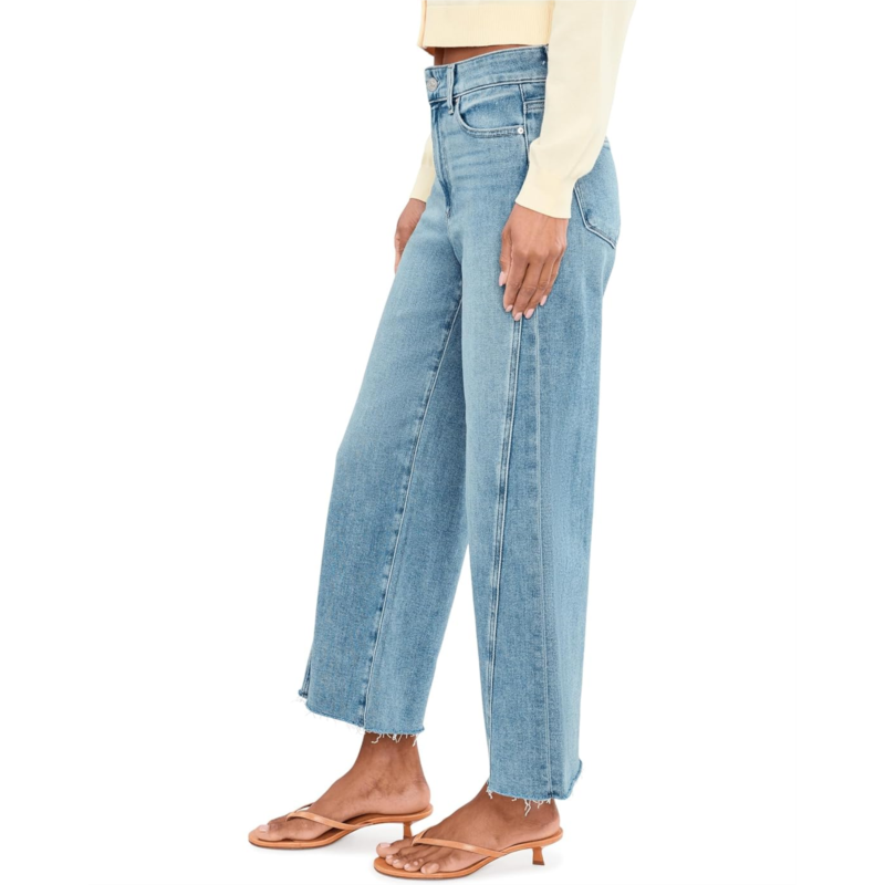 - Break away from the classic straight leg wearing the PAIGE Anessa, a masterclass in modern tailoring. Designed with a flattering high-rise waist and a relaxed wide-leg silhouette, this pair elongates your frame while keeping things easy and breathable. The regular fit offers just the right balance of structure and comfort, while the ankle-length inseam adds a modern, versatile edge. Crafted from TRANSCEND VINTAGE denim, it delivers that perfectly worn-in aesthetic without compromising on softness. The twisted outseam panels bring a subtle, fashion-forward twist, and the raw hem adds a touch of undone charm. Finished with a classic zip-fly and button closure, five-pocket styling, and belt loops for everyday functionality.