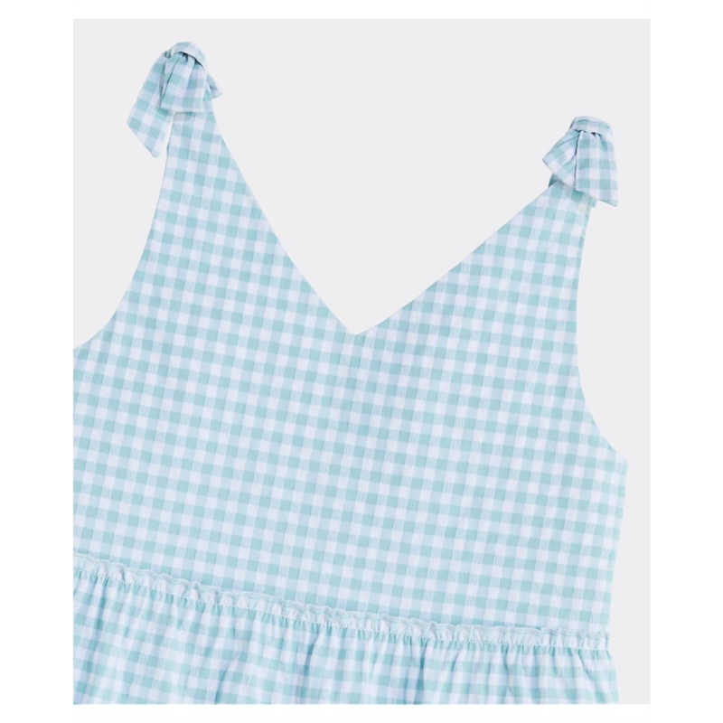 - Featuring an easy-tiered silhouette, the Vineyard Vines Kids Girls'' Harbor Tie Tiered Dress is a great choice to get your kid ready for parties and different occasions. The nylon blend fabric offers all-day comfort and breathability. This sleeveless dress is styled with a V-neckline, a tiered hem, and an allover checkered pattern.