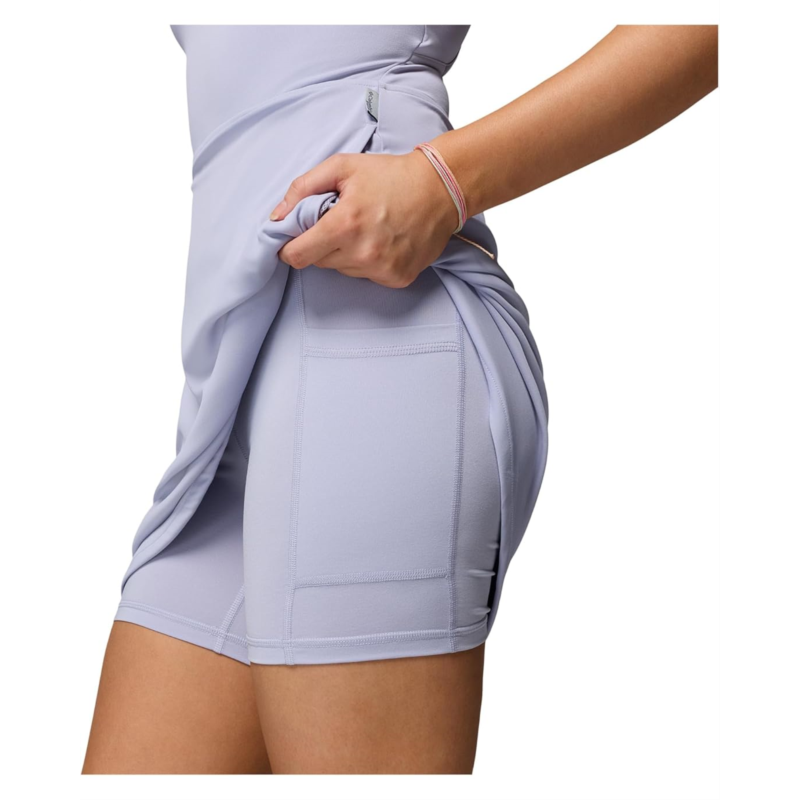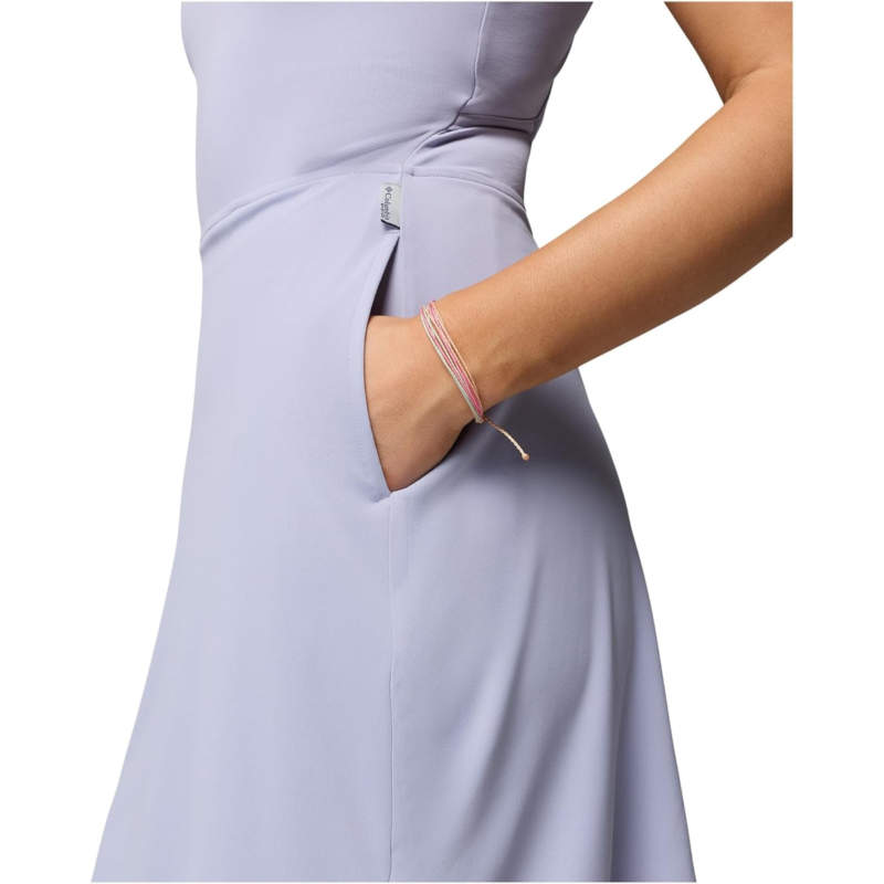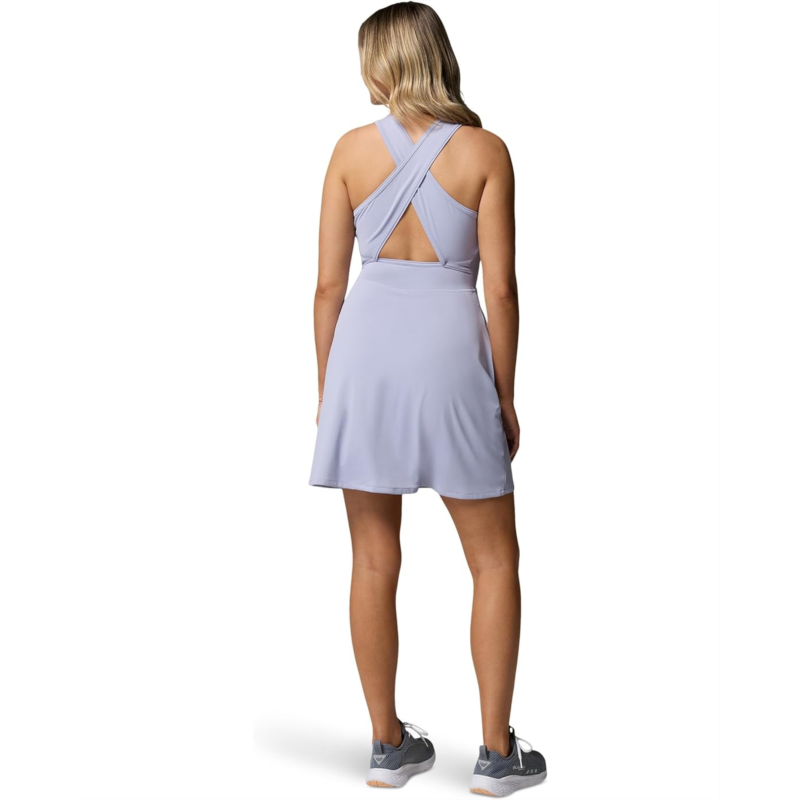 - Discover the perfect look that speaks volumes about your fashion-sense donning the Columbia Tidal Dress. The above-knee-length dress features Omni-Shade Broad Spectrum UPF 50 technology, built-in interior short for an active fit, and sleeveless construction with crisscross back detailing. It is crafted from Omni-Wick fabric that keeps you dry and cool by pulling moisture