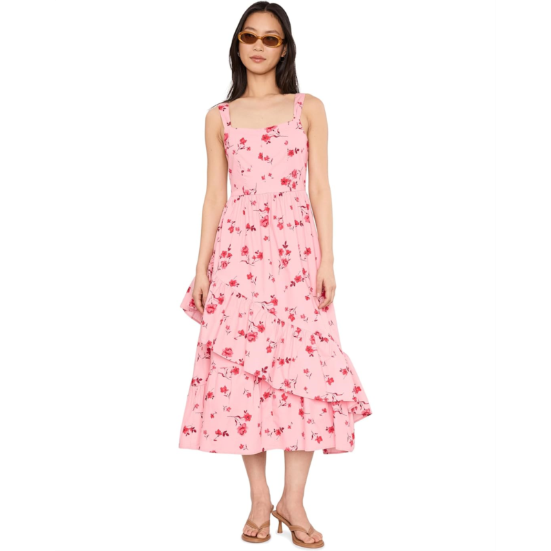 [US] Womens CeCe Asymmetrical Ruffle Hem Midi Dress