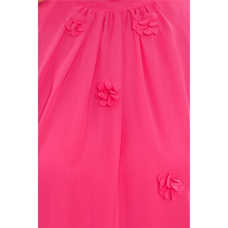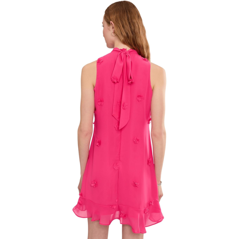 - Let your style and elegance speak for you wearing the CeCe 3D Floral Applique Tie Neck Mini Dress, crafted in a contemporary design with soft textures. This statement mini dress is adorned with dimensional 3D floral appliques and a mock neck with back-tie detail. The sleeveless silhouette and textured embellishments add a whimsical, elevated touch. The slightly ruffled hem completes the look.