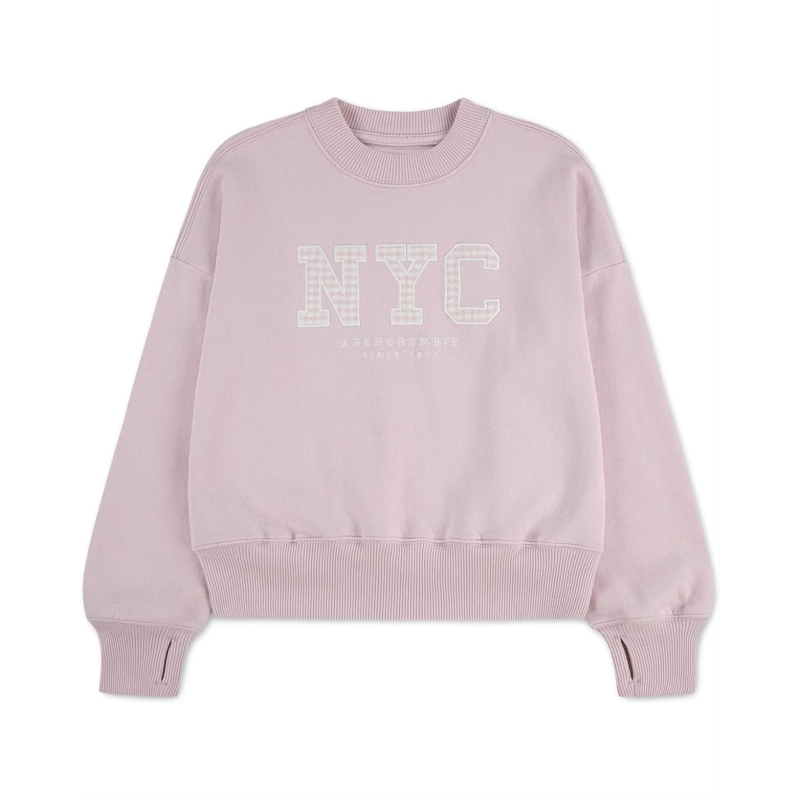 - This Gingham Nyc Sweatshirt from abercrombie kids is a wardrobe essential made of cotton/poly fleece in a cropped, roomy silhouette and features a gingham NYC graphic. The tagless ribbed crew neckline creates comfy, fuss-free wear, dropped shoulders provide a relaxed fit, and the sleeves have thumbhole cuffs that add a sporty touch.