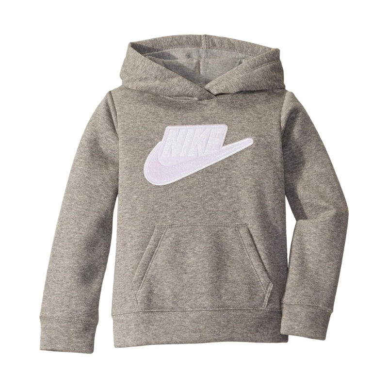 - The relaxed fit and cozy fabrication of the Nike Kids Sueded Fleece Iridescent Logo Pullover Hoodie will keep her playground ready all-day long.