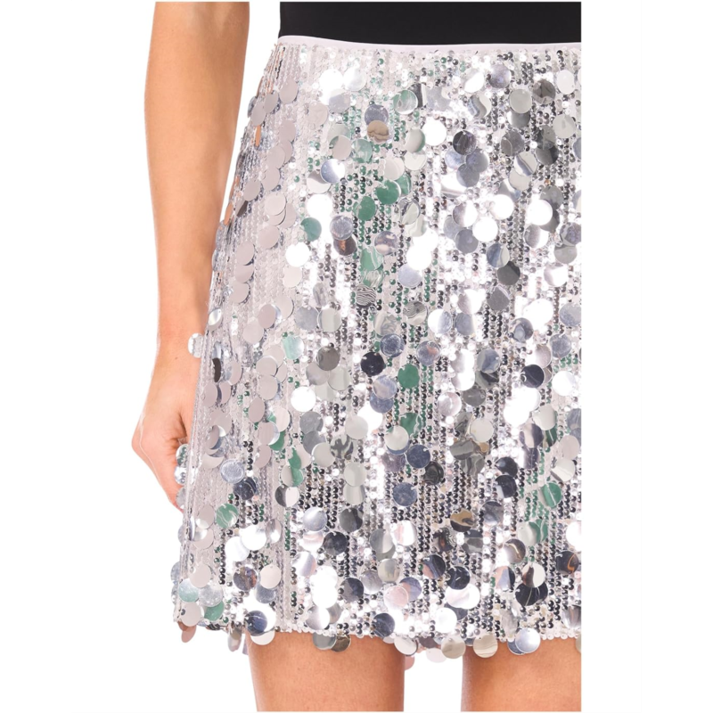 - Shine bright and dance boldly in the CeCe Silver Sequin Paillette Mini Skirt. This high-rise mini is designed to flatter your silhouette with a sleek, figure-hugging fit that moves effortlessly with you. Covered in glittering sequin paillettes, it radiates pure confidence and glamor. The invisible zipper closure keeps the finish seamless, while the easy pull-on style ensures comfort without compromising on chic.
