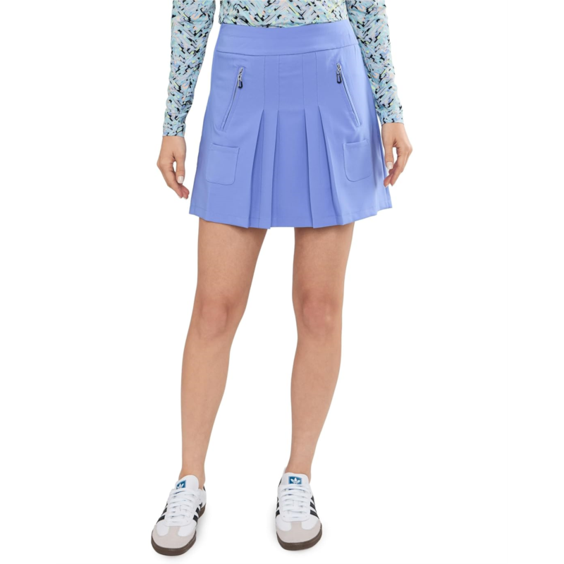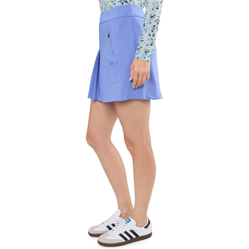 - Sporty chic meets effortless confidence in the Jamie Sadock 16 A-Line Skort Wide Pockets. Crafted with a flattering mid-rise waist and an easy pull-on design, this skort delivers ultimate comfort with a smooth, secure fit that moves with you. The stylish A-line silhouette enhances your natural shape while providing a breezy, feminine flow perfect for active days. A pleated front adds a playful athletic vibe, giving the skort a polished yet sporty edge that transitions effortlessly from the golf course to casual outings. Thoughtfully designed wide pockets offer convenient storage for essentials while maintaining the sleek look.