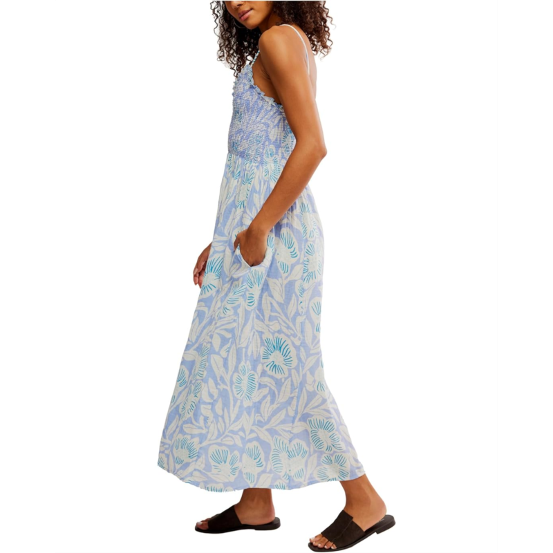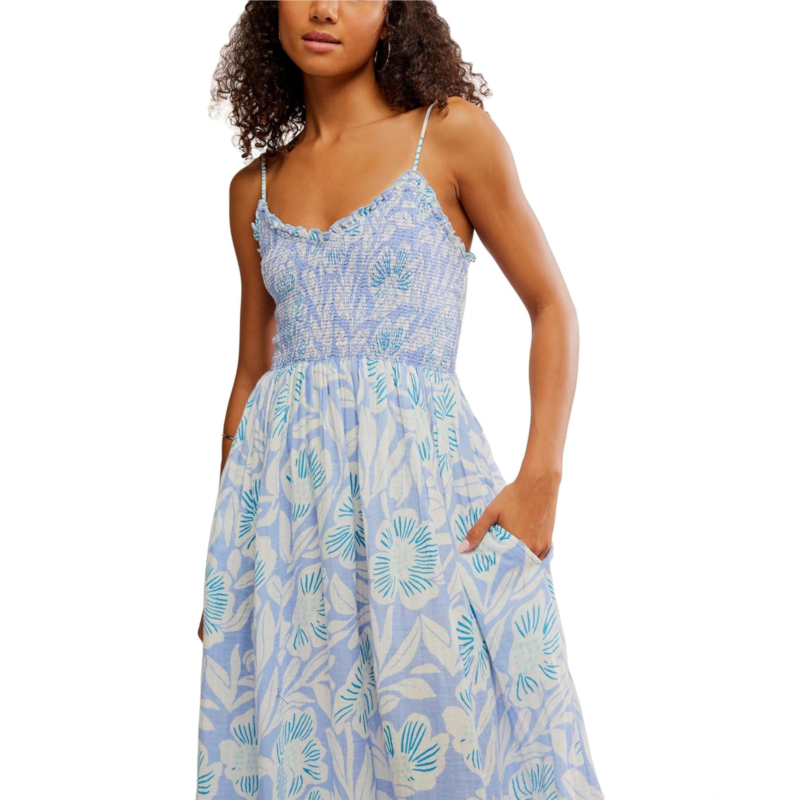- The Free People Sweet Nothings Midi is curated to showcase elegance, style and sophistication. It features scoop-neckline with ruffle trim detailing, sleeveless silhouette with thin fixed shoulder straps, and smocked bodice.