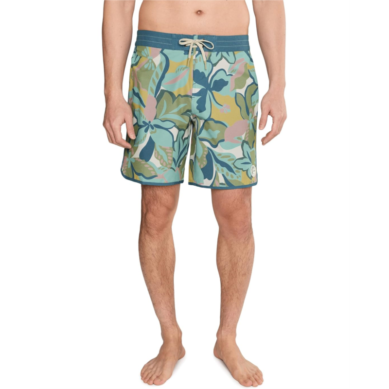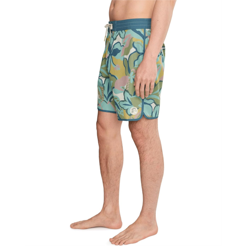 - The O''Neill OG Print Scallop 18'''' Boardshorts blend a heritage-inspired silhouette with the performance needed for every saltwater pursuit. Featuring a men''s fixed waist with a secure drawstring closure, these boardshorts deliver a reliable fit that stays comfortable from beach breaks to boardwalk strolls. The above-the-knee cut adds a modern, athletic vibe while allowing complete freedom of movement. Crafted with triblend stretch feeder stripe fabric, they offer flexible comfort that moves with every paddle and ride. O''Neill Hyperdry DWR technology ensures quick-drying performance, keeping you light and comfortable both in and out of the water. Thoughtful details like the dip tip drawcord, anti-rash Hyperthread stitching, and convenient back patch pocket enhance durability and functionality.