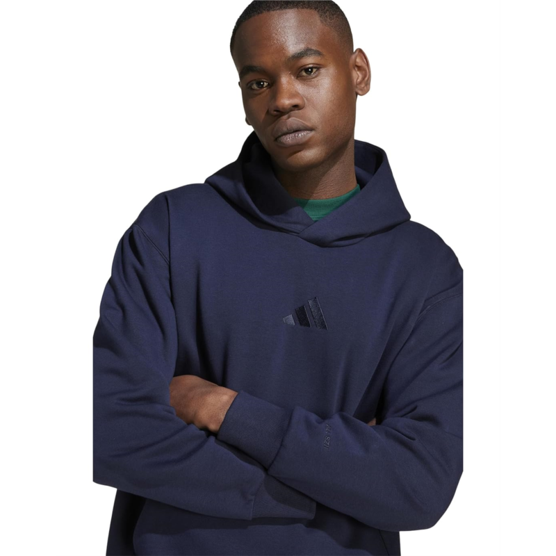 - Experience all-season comfort and style with the All Szn Fleece Hoodie. This loose-fitting mens hooded sweatshirt is crafted from a blend of 70% cotton and 30% recycled PET, making it a sustainable choice that doesnt compromise on warmth. With design details like a dart seam kangaroo pocket, underarm rib gusset, and a tonal embroidered 3 BAR logo on the chest, this everyday hoodie offers both comfort and modern sportswear aesthetics.