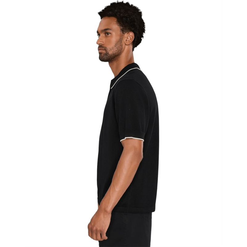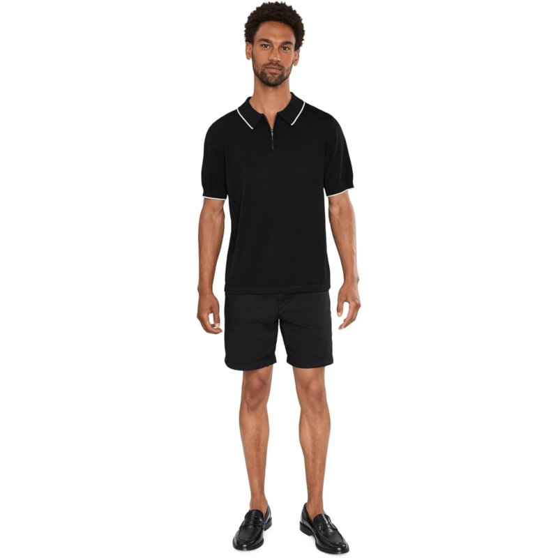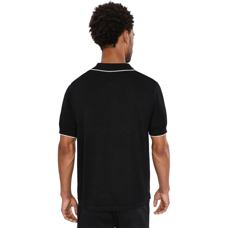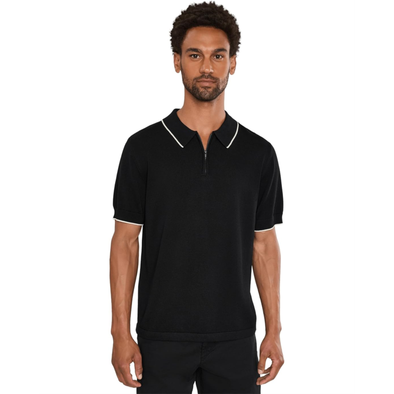 - Redefine your style game wearing the sleek and sophisticated Liverpool Los Angeles Short Sleeve Zip Sweater Polo. This short sleeve sweater polo is crafted from refined yarns with a smooth finish, featuring contrast stripes at the sleeves and collar. The classic collared neck with quarter-zipper detail brings subtle structure to a clean, confident cut, while the straight hem neatly completes the look.