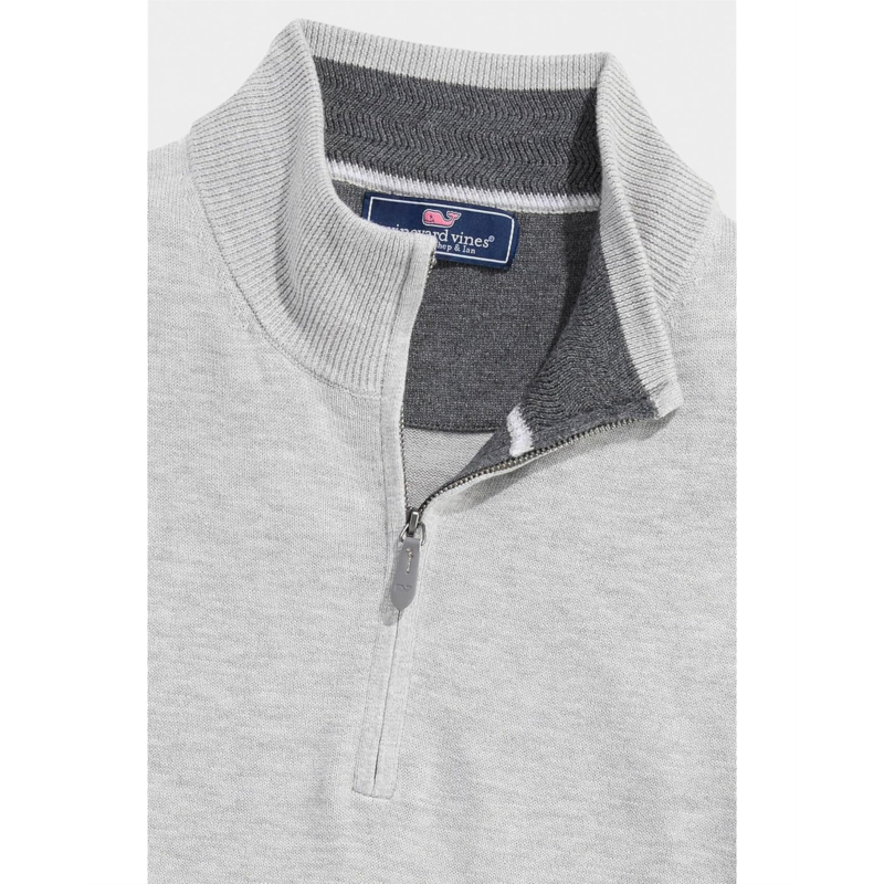 - Made from an ultra-soft, lightweight cotton-silk blend, the Vineyard Vines Boathouse Tipped Quarter-zip Sweater provides optimal warmth without the bulkiness. Its quarter-length zippered front closure offers easy wear. This pullover sweater is styled with long sleeves, ribbed cuffs, a collared neckline, and a ribbed straight hem.