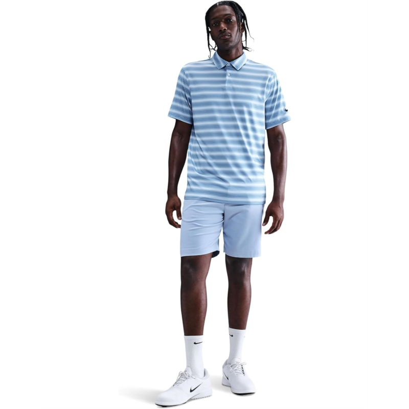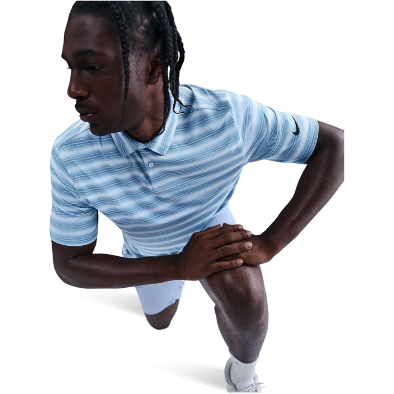 - The best way to cool off high temps is with a low round, and the Nike Dri-FIT Good Polo Short Sleeve Stripe is designed to help you do just that. This lightweight, sweat-wicking polo helps you stay cool and comfortable so you can focus on keeping those dreaded doubles and triples off your card. It features a collared neckline with a two-button placket, short sleeves, and a straight hem.