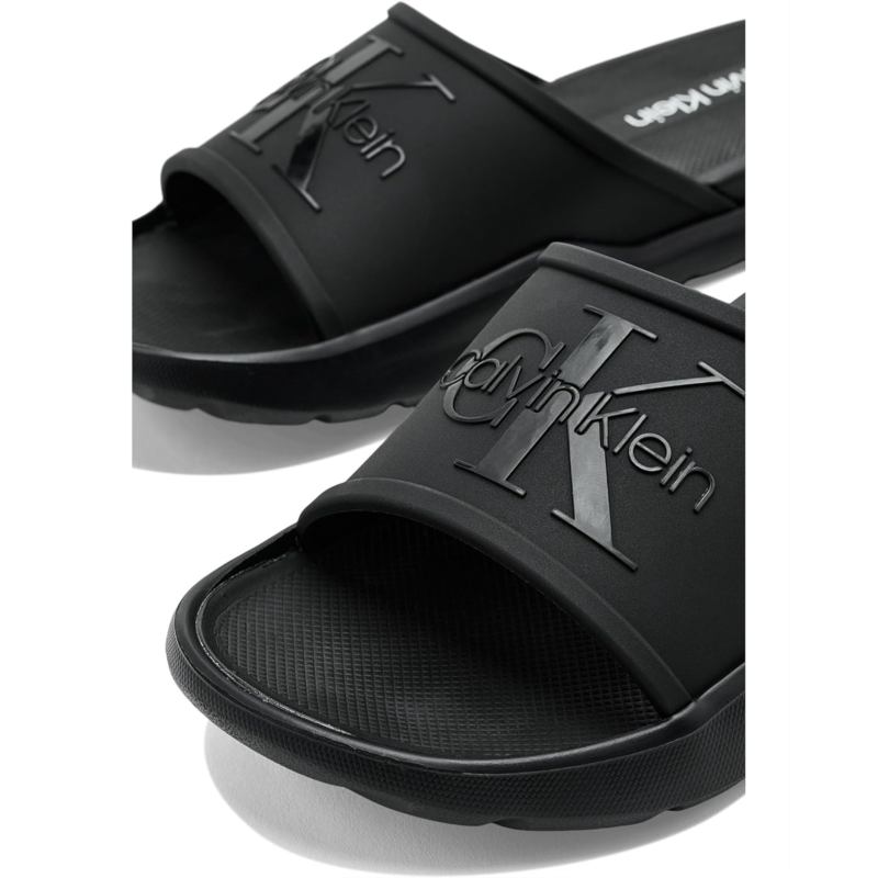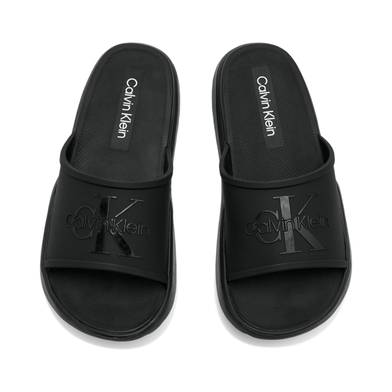- Add a cool touch to your wardrobe in the Calvin Klein Meloy casual slides. Featuring a slip-on silhouette and CK logo detailing on the upper. This sandal is the perfect wardrobe staple. Founded in New York in 1968, the brand elevates everyday essentials to globally iconic status.