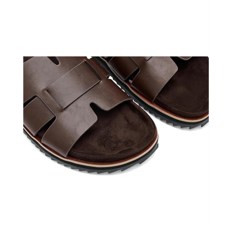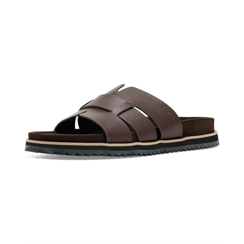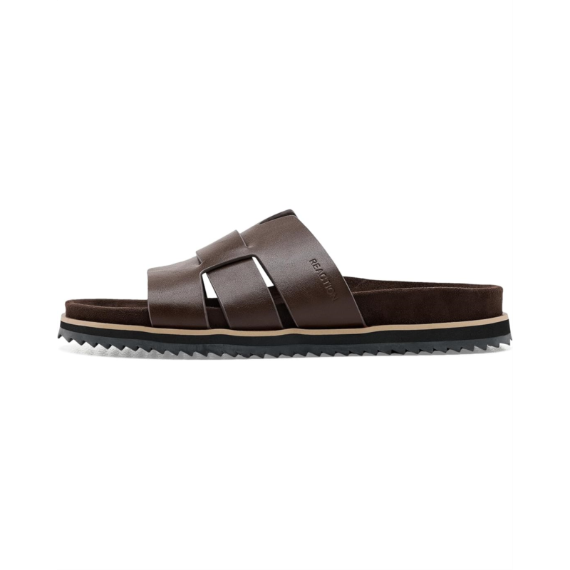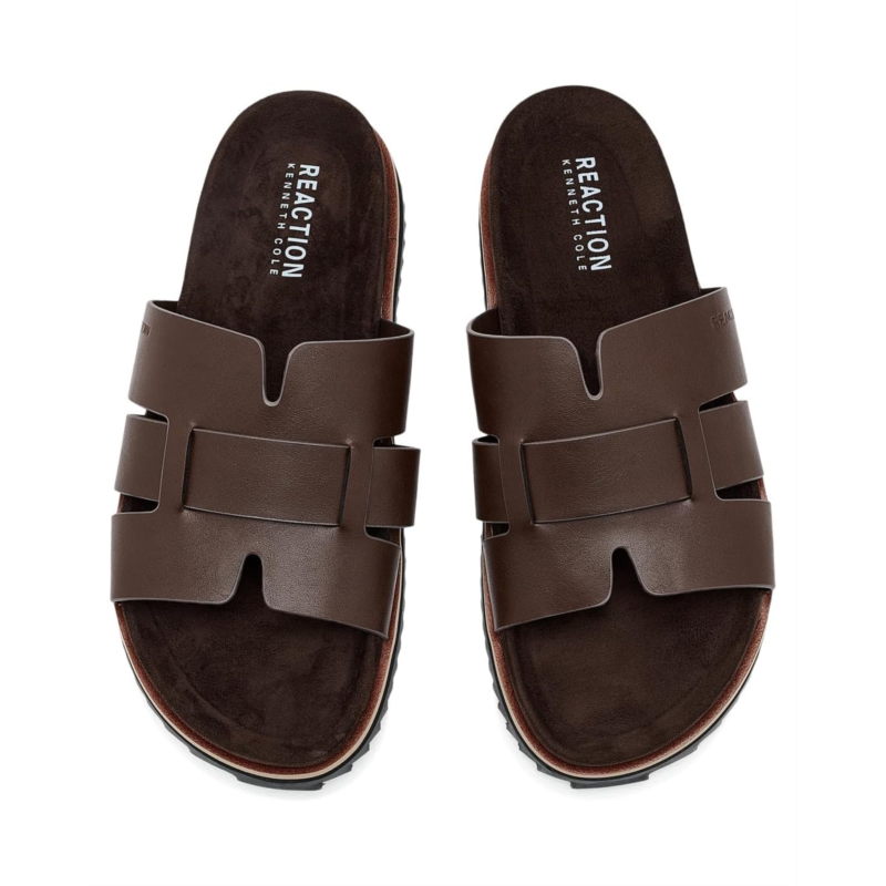 - The Kenneth Cole Reaction Calen is a casual and smart sandal featuring bold geometric straps on a faux leather upper and a contoured polyurethane footbed that cushions every sunny-day step. The slip-on style sandal features a man-made lining and an open-round toe silhouette.