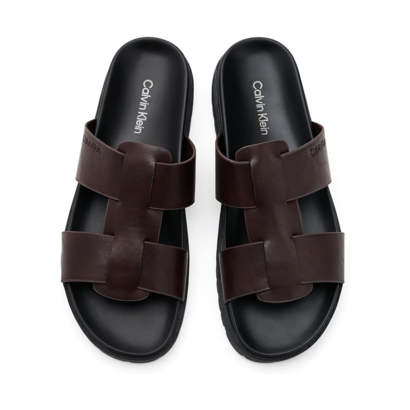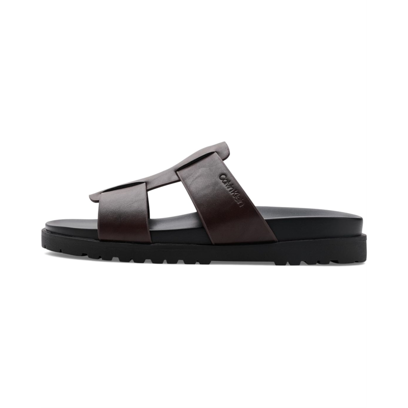 - Add a cool touch to your wardrobe wearing the Calvin Klein Rolinde Casual Slides. Featuring a slip-on silhouette and double strap detailing on the faux leather upper, this open round-toe sandal is the perfect wardrobe staple.