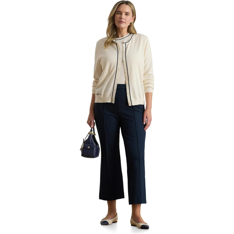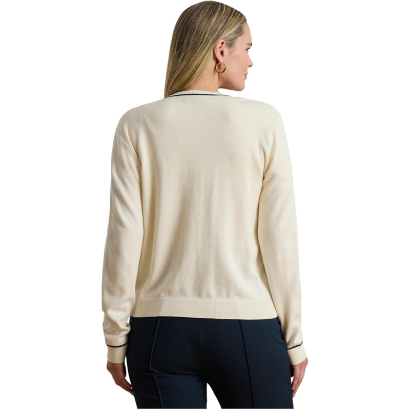[US] POLO Ralph Lauren Womens Lauren Ralph Lauren Plus Size Two-Tone Cotton-Modal Cardigan