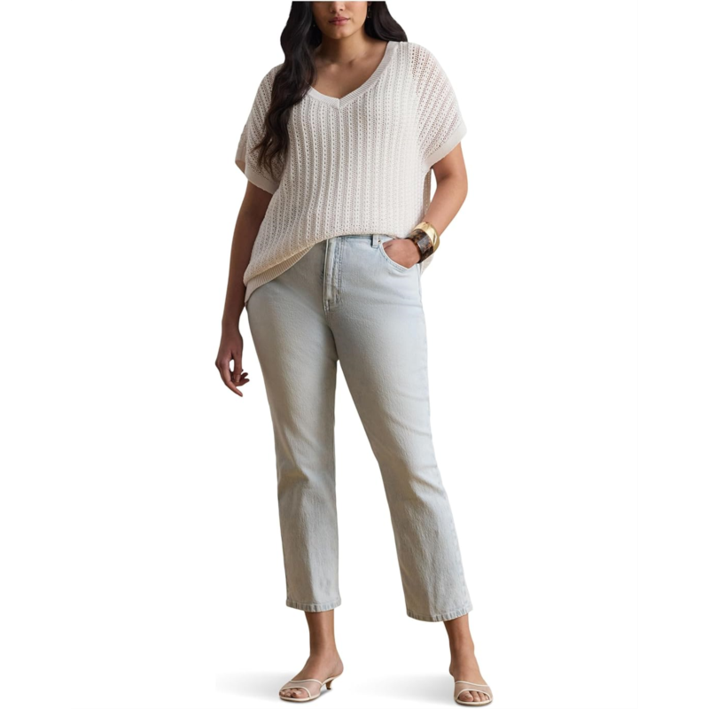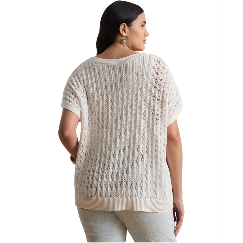 [US] POLO Ralph Lauren Womens Lauren Ralph Lauren Plus Size Cotton-blend Mesh Short Sleeve Sweater