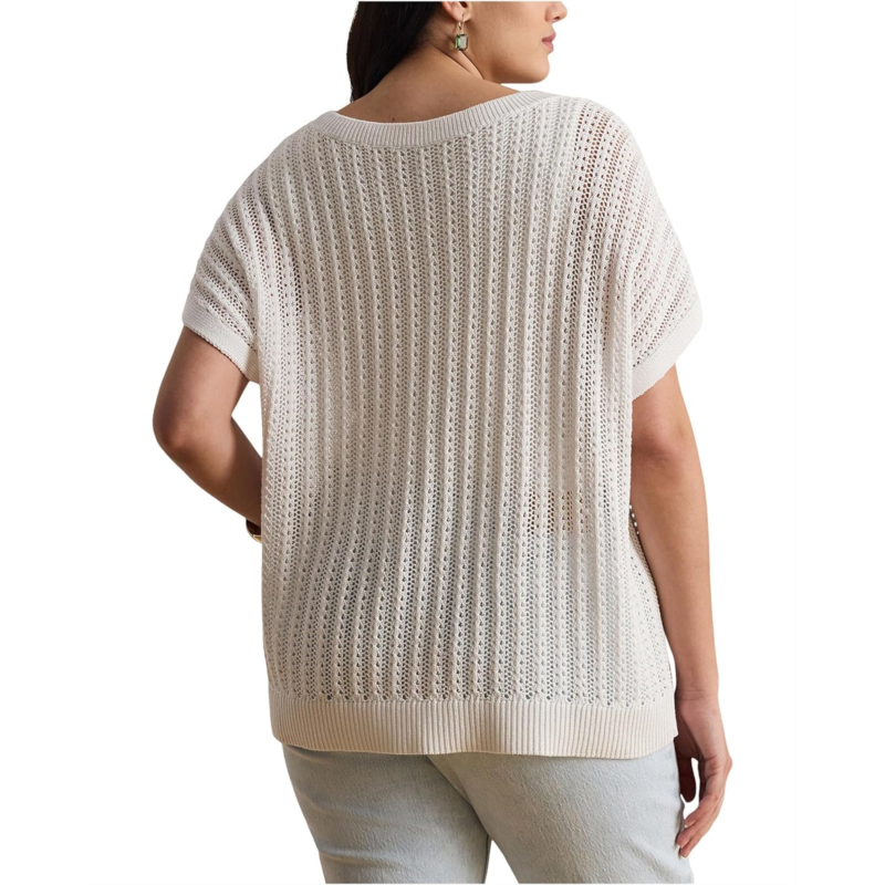 POLO Ralph Lauren Womens Lauren Ralph Lauren Plus Size Cotton-blend Mesh Short Sleeve Sweater