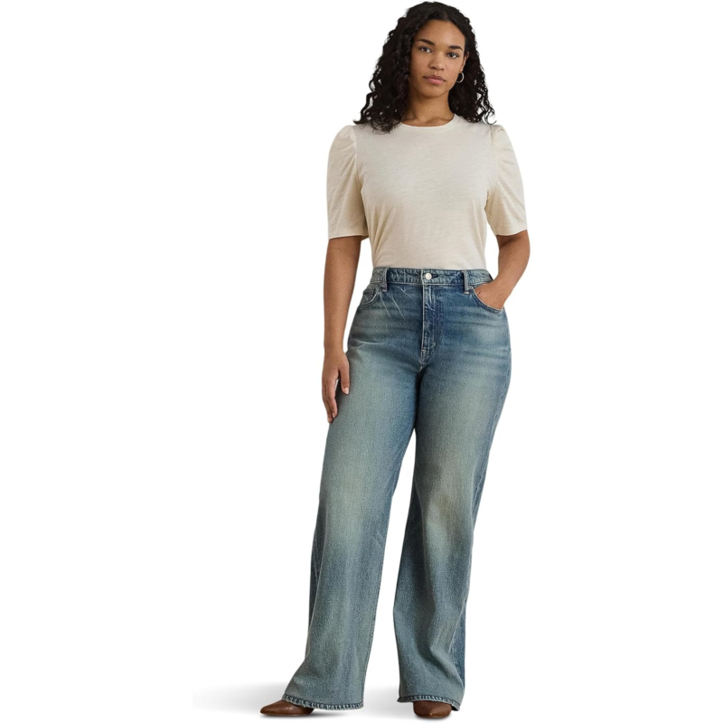 [US] POLO Ralph Lauren Womens Lauren Ralph Lauren Plus Size Slub Jersey Puff-Sleeve Top