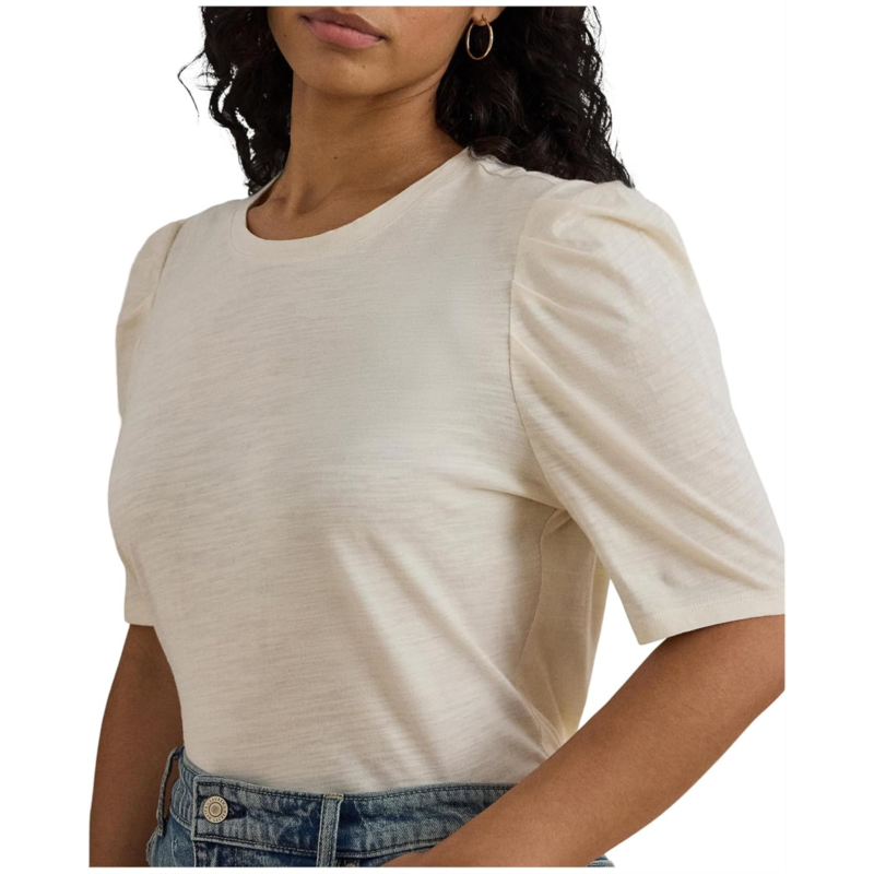 POLO Ralph Lauren Womens Lauren Ralph Lauren Plus Size Slub Jersey Puff-Sleeve Top