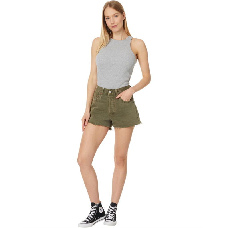 - Look effortlessly chic in the Levis Womens 501 Original Shorts. With a mid-rise waist and slim fit, these shorts provide a flattering silhouette. The belt loops, zip-fly and button closure, and raw hem add a touch of detail to this classic style.